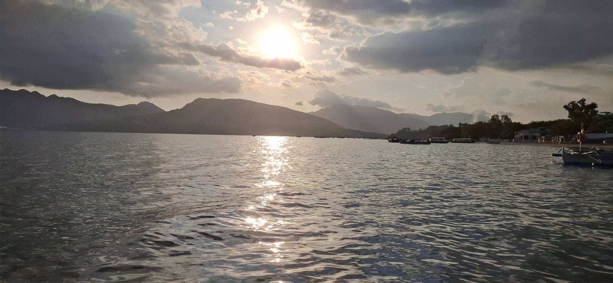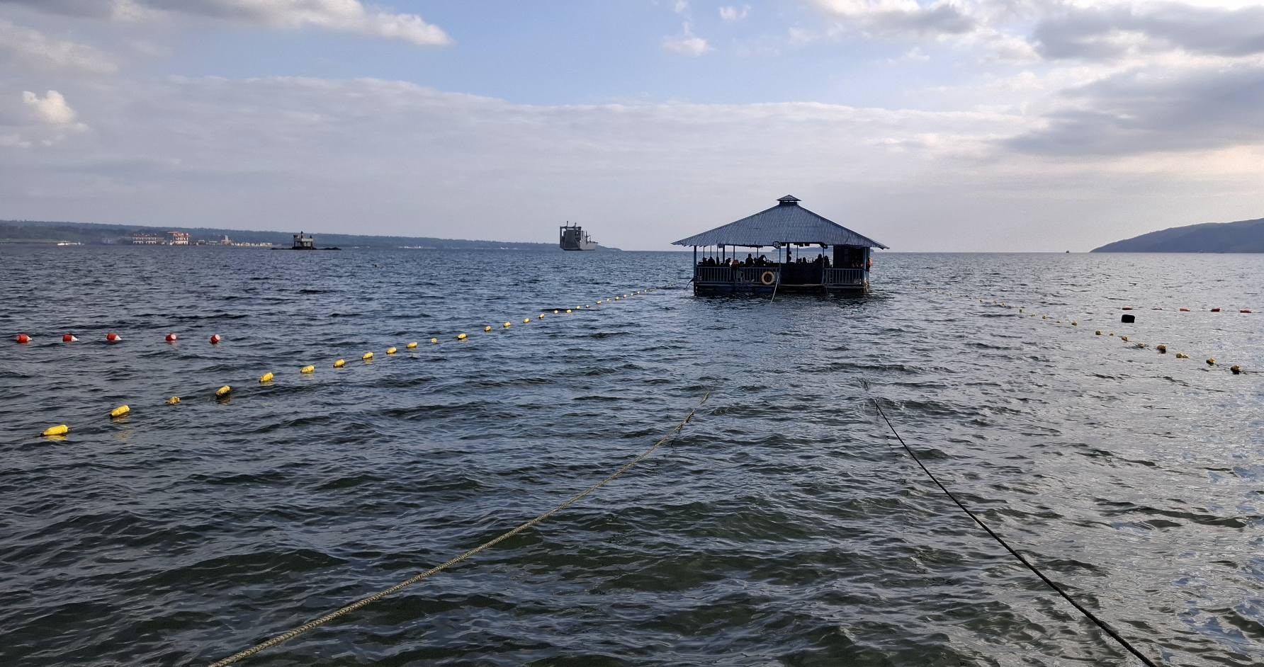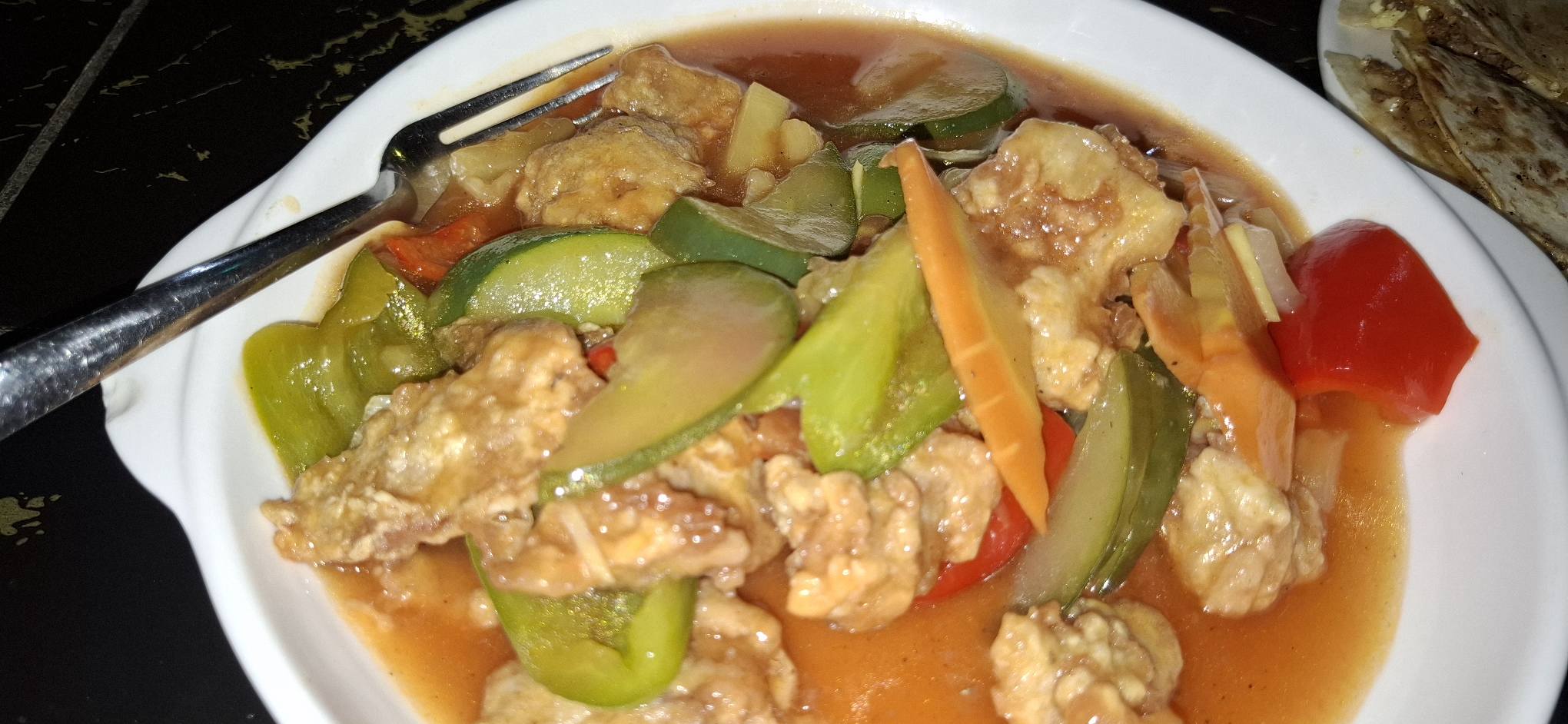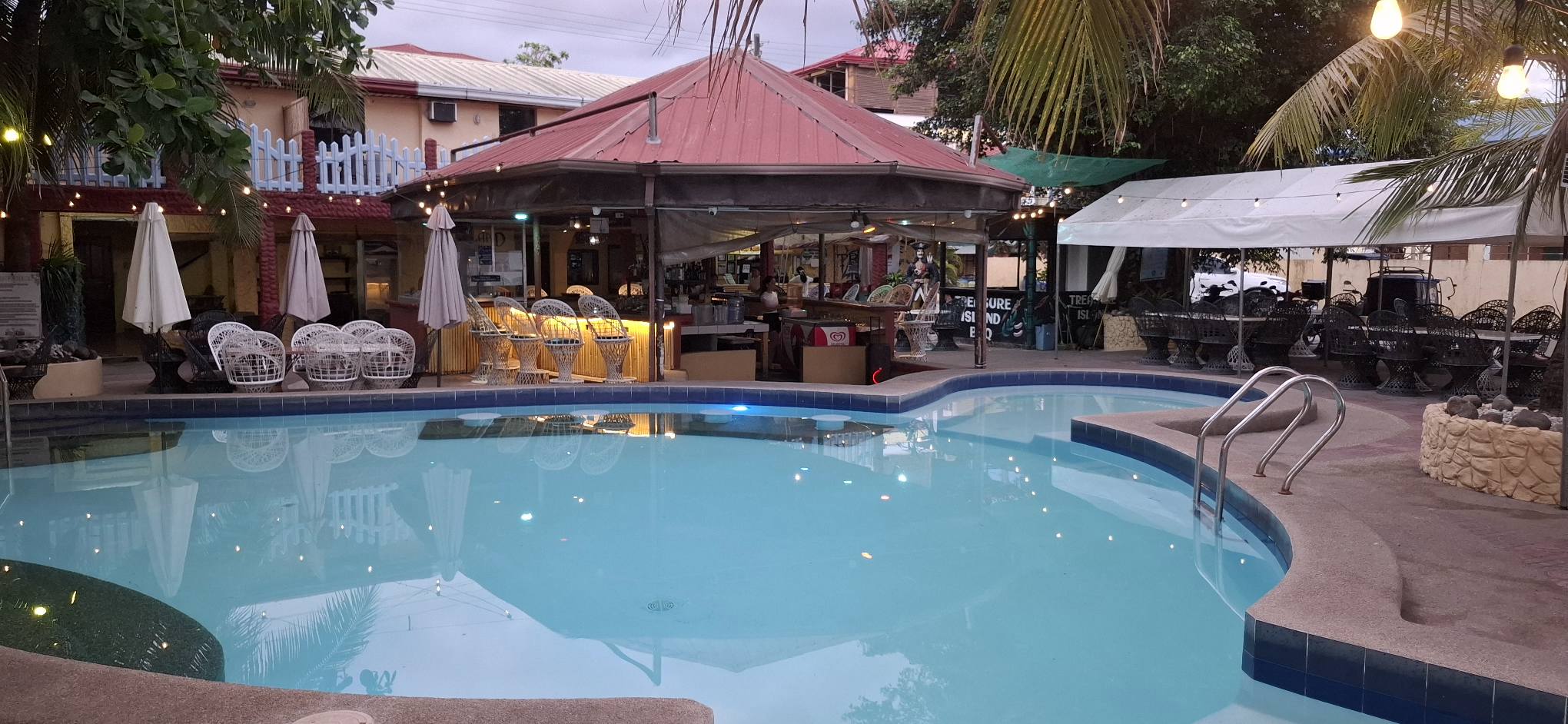 Toes in the sand……sun in the sky…,,,and a bar on the water.Busy on the floater this week. That group of youngish men behind us had tabled lots of the girls and were plying them with lady drinks and a pizza delivered from Treasure Island.Whenever one of these Navy supply ships (crewed by civilians) is anchored in the bay, the younger guys make a showing in Barretto.The five o’clock sun.The Baloy Beach view.And then this happened again.Beauty is in the eye of the beer holder.Thanks for another nice show!Time for dinner at Treasure Island.My dinner date.We shared a sweet-and-sour pork dish……and some beef quesadillas. They were both very tasty.