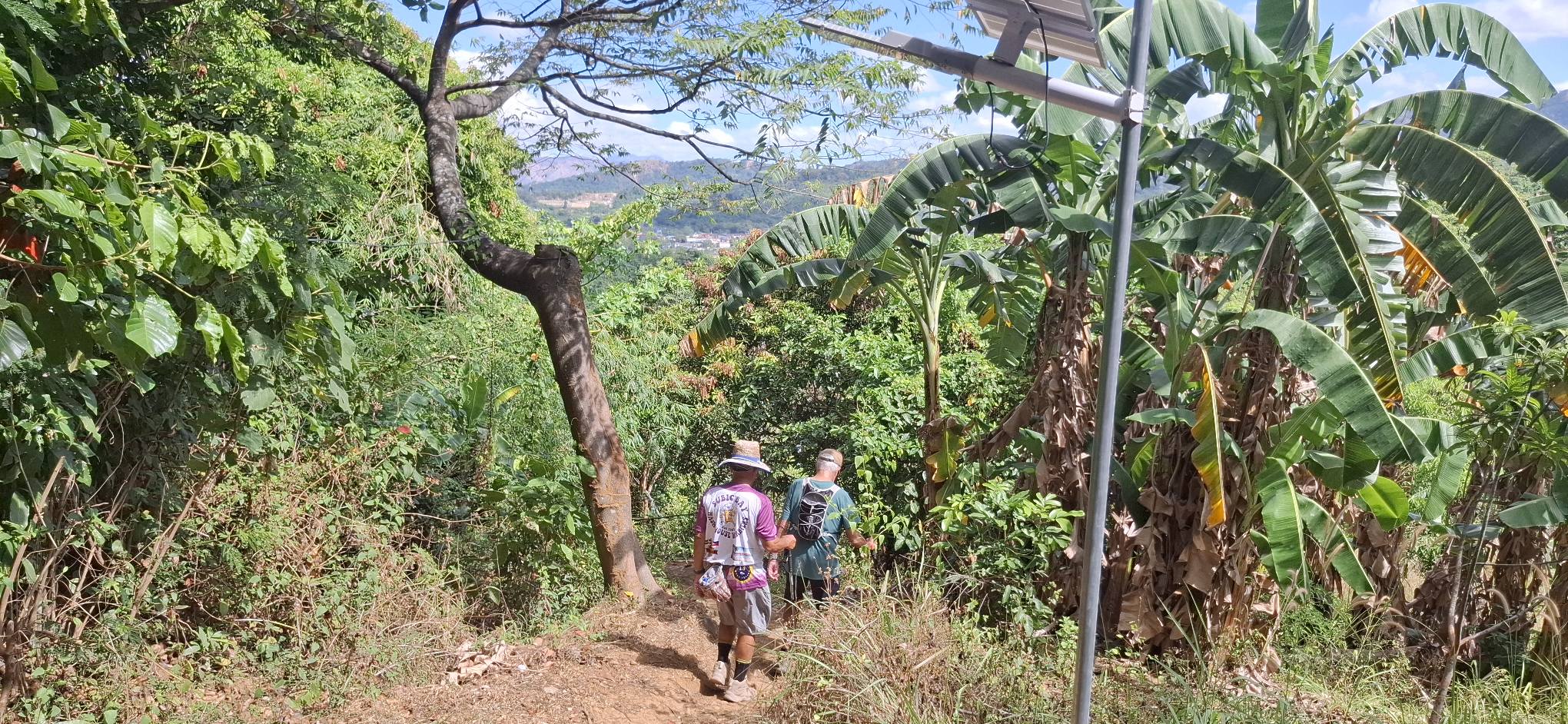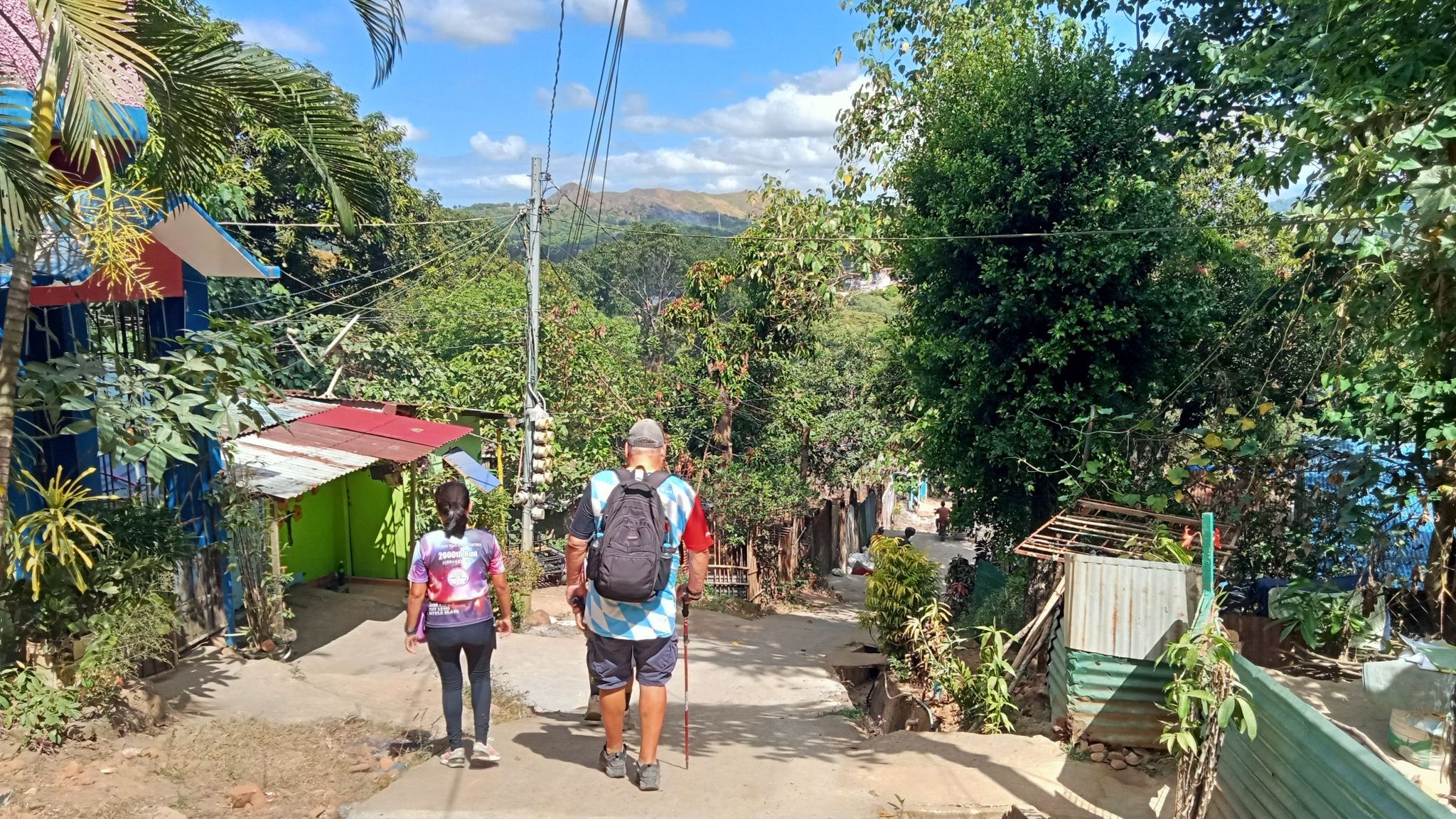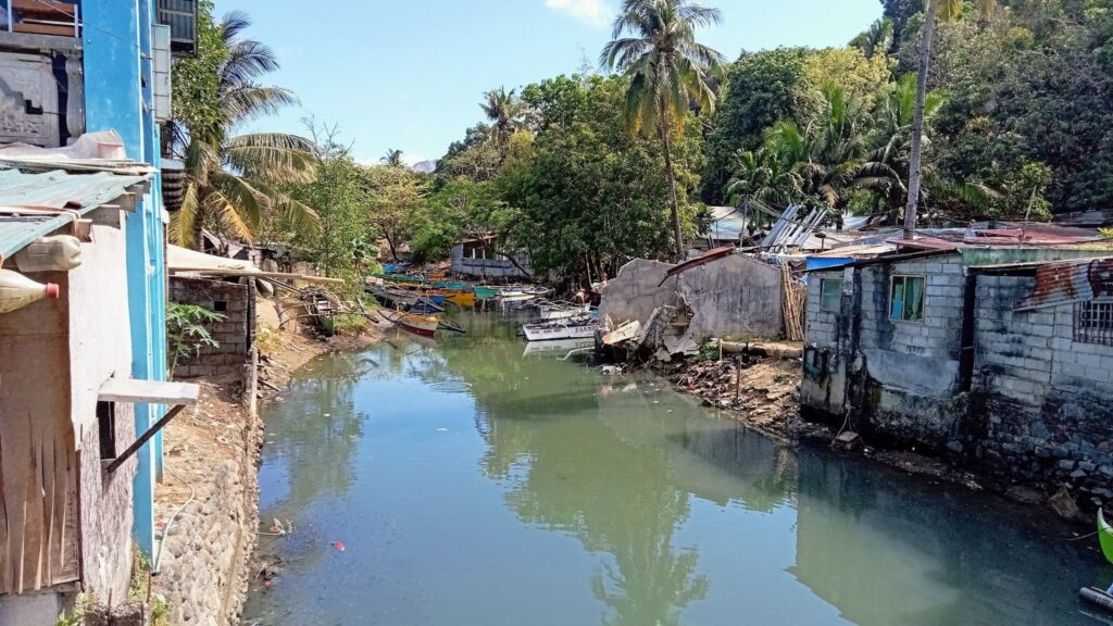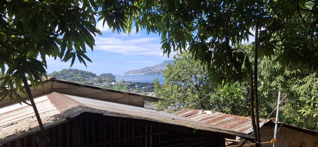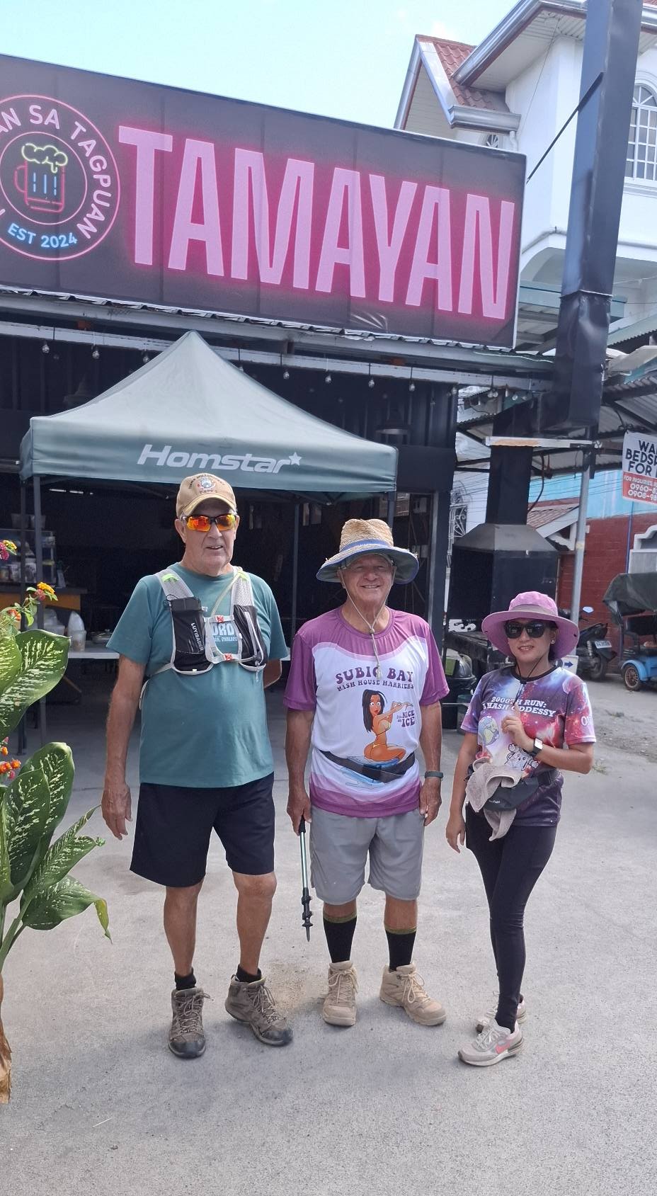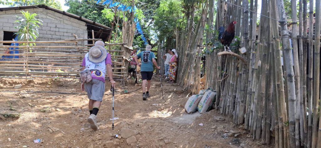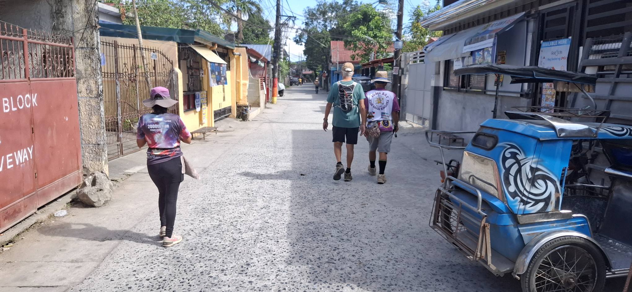 I think Scott might have wished I had opted out.I didn’t count how many, but there were lots of steps, and they were uneven and irregular.Fighting my way upward.A view from the top.It is hard to imagine living up here and making those steps we just climbed part of a daily commute.Mountain views are nice from here, though.And now for the downward trek.Back on the pavement.On the riverside.That’s as close to heaven as I want to be for now.Something to ponder.A different river to cross.Subic living.Where the river meets the bay.Climbing those steps made it feel a lot longer than 5K.