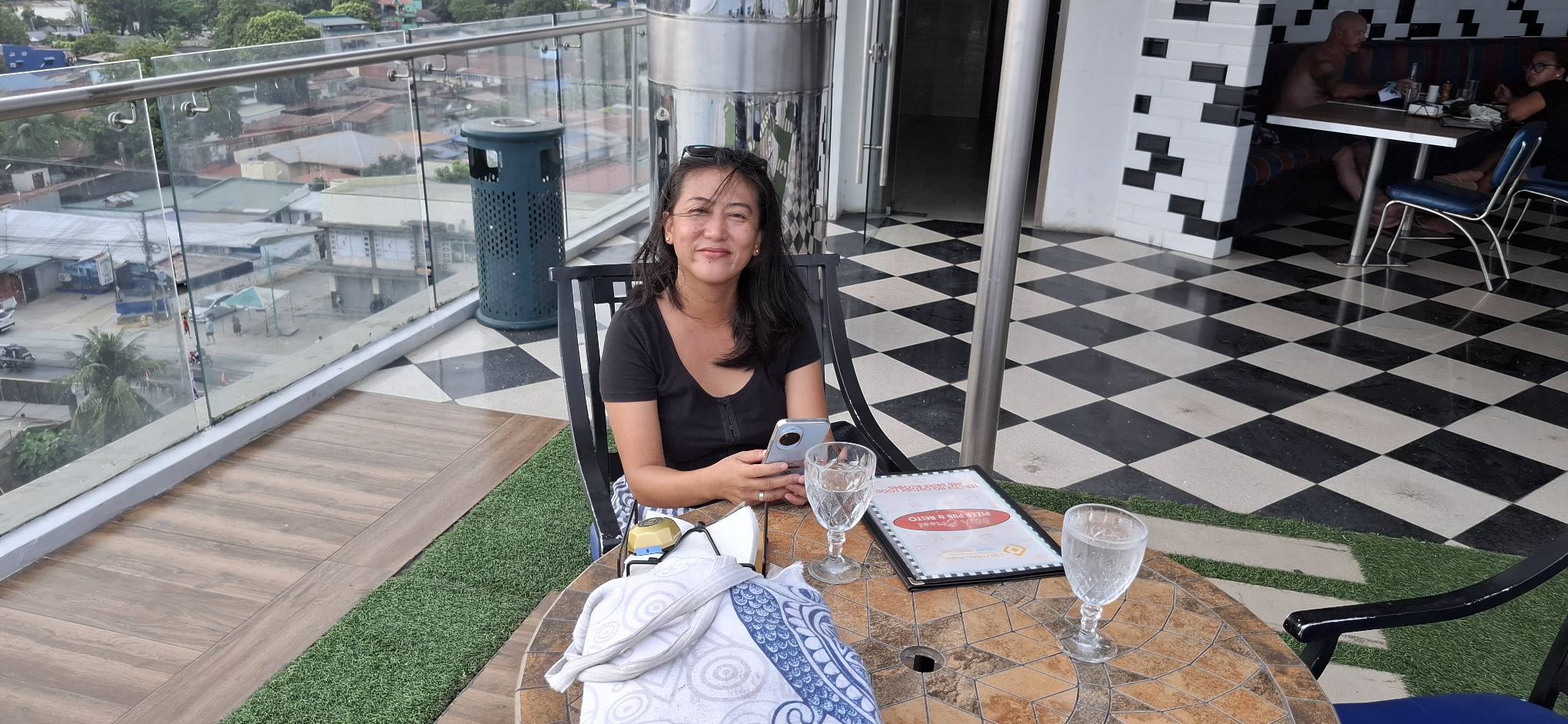 For our Sunday evening out on the town, I surprised Swan with a rare visit to the rooftop of the Central Park Reef hotel.